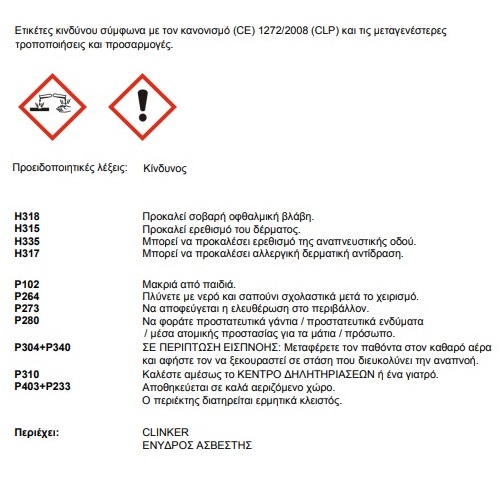 ΑΠΟΘΗΚΕΥΣΗ : Σε ξηρό περιβάλλον με θερμοκρασία μεγαλύτερη από 0 C για 12 μήνες από την ημερομηνία παραγωγής.