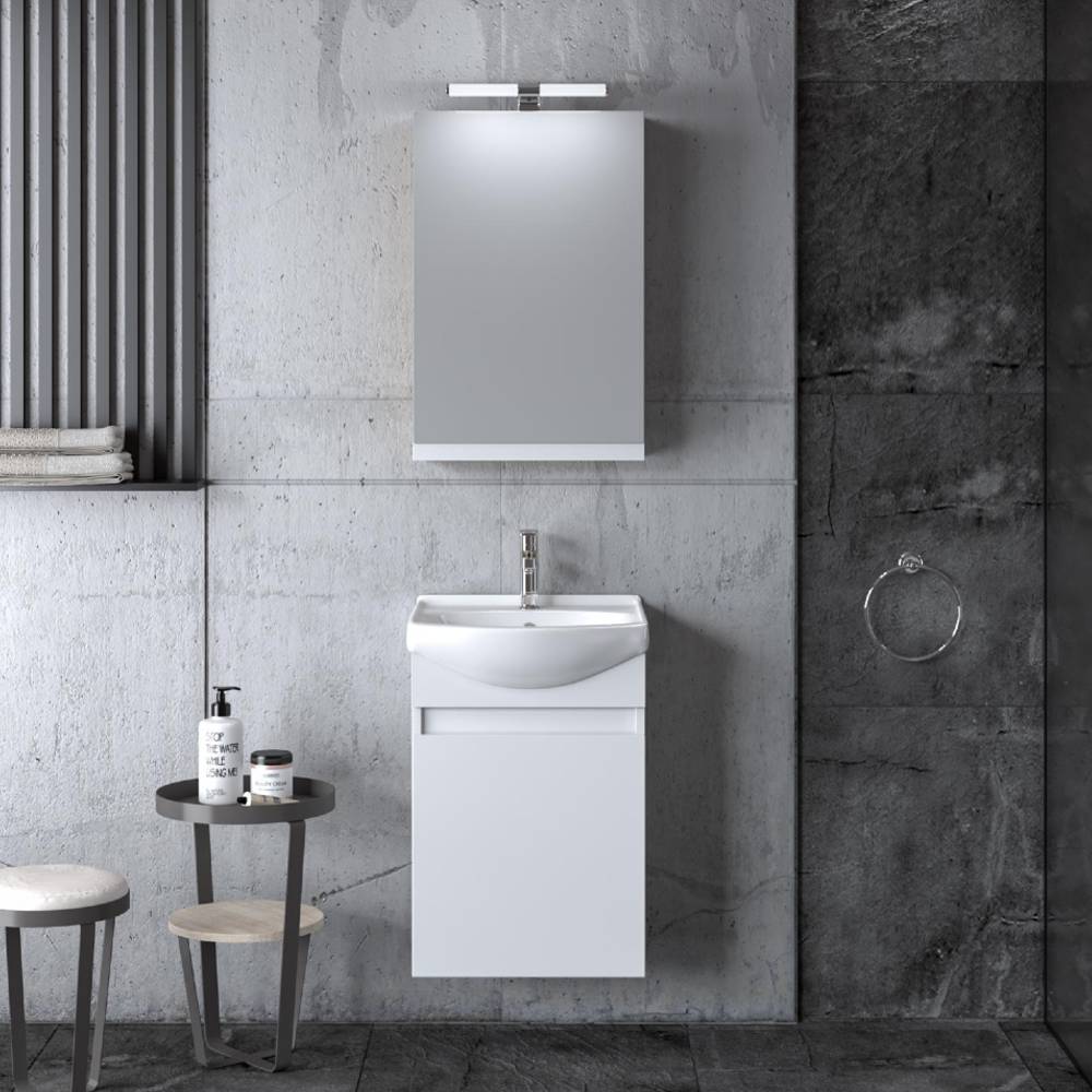 Έπιπλο Μπάνιου Siena 45 white κρεμαστό από λευκή γυαλιστερή μελαμίνη ελληνικής κατασκευής με φωτιστικό για μικρά μπάνια και wc