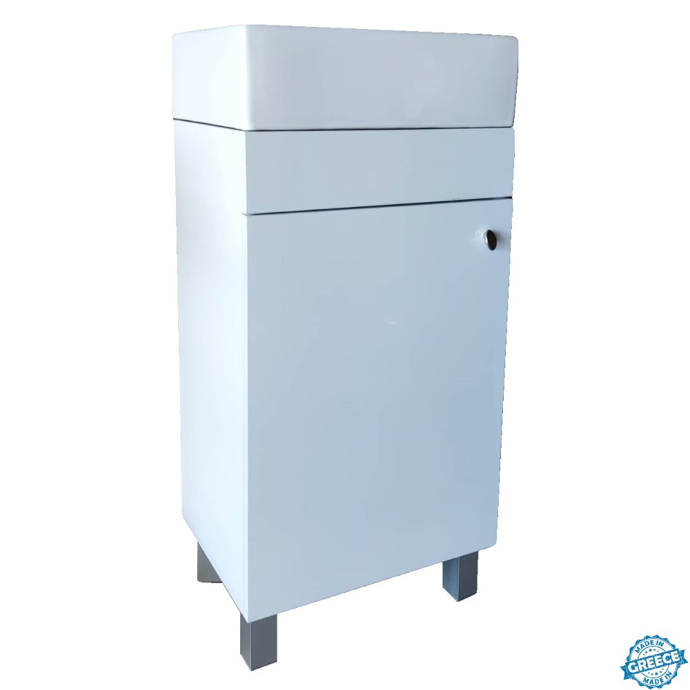 Έπιπλο Μπάνιου Valia 41 white mdf και λευκή γυαλιστερή λάκα, ελληνικής κατασκευής ιδανικό για μικρά μπάνια σε μοντέρνα γραμμή