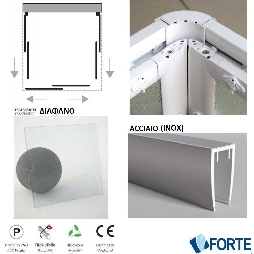ΚΑΜΠΙΝΑ ΝΤΟΥΖΙΕΡΑΣ MAGLIO 80x80x80x185 FORTE Κρυστάλλινη (Inox πλαίσιο Διάφανο Κρύσταλλο)