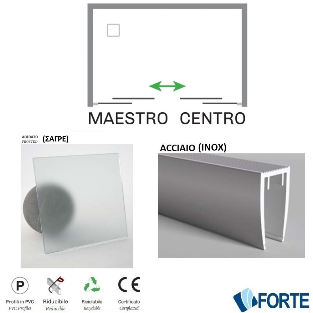 Καμπίνα Nτουζ Maestro Centro 195cm της FORTE Ιταλίας Κρυστάλλινη με Inox πλαίσιο Pvc και Σαγρέ Κρύσταλλο ασφαλείας
