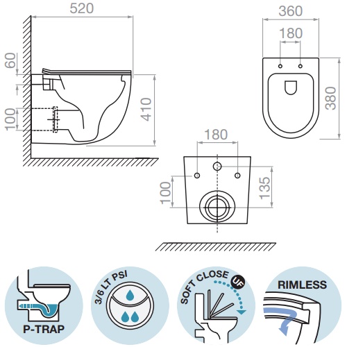 *Το κάλυμμα της κρεμαστής λεκάνης συμπεριλαμβάνεται και είναι soft close