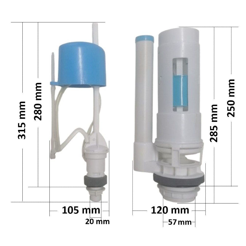 Μηχανισμός Καζανακίου 2πλός Kronos plus με παροχή νερού από κάτω για τοποθέτηση σε πορσελάνινα καζανάκια λεκάνης