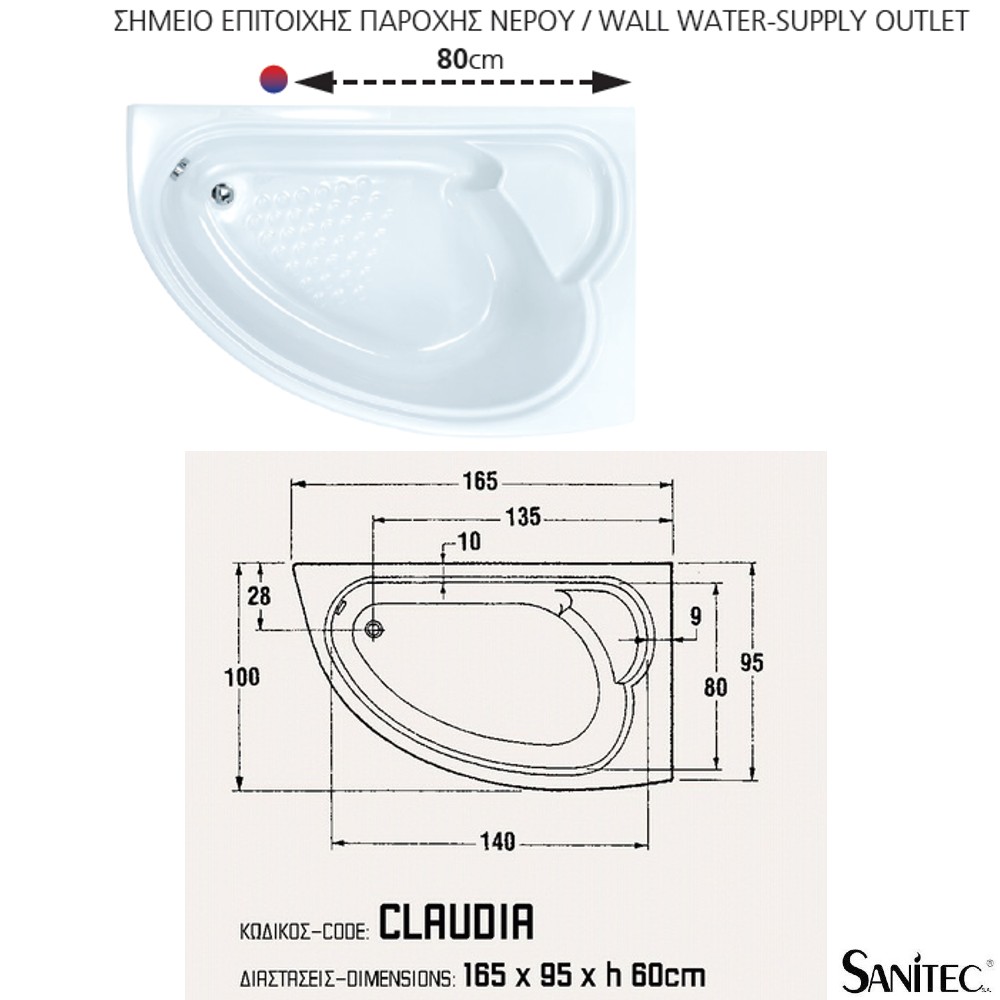 Ασύμμετρη ακρυλική μπανιέρα “CLAUDIA 165”