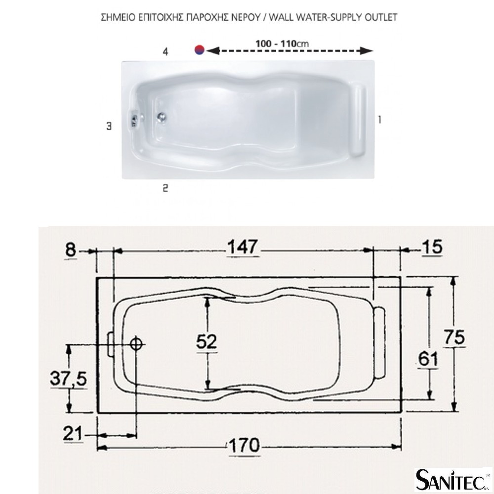 Ευθύγραμμη ακρυλική μπανιέρα “DIANA 170”