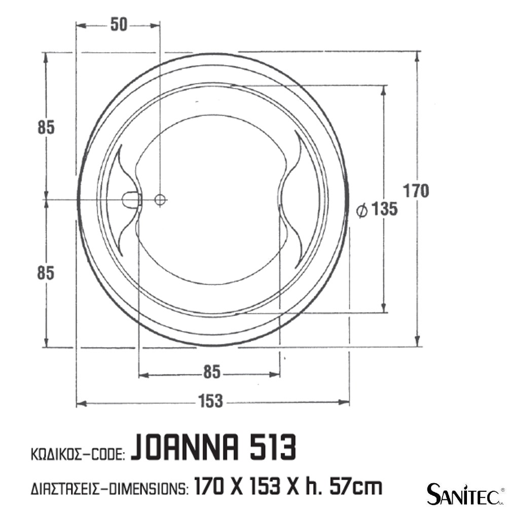 Στρόγγυλη ακρυλική μπανιέρα “JOANNA 170”
