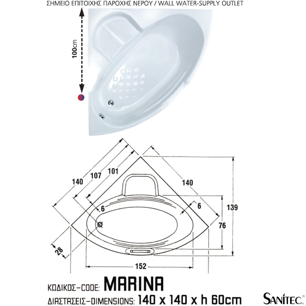 Γωνιακή ακρυλική μπανιέρα “MARINA 140”
