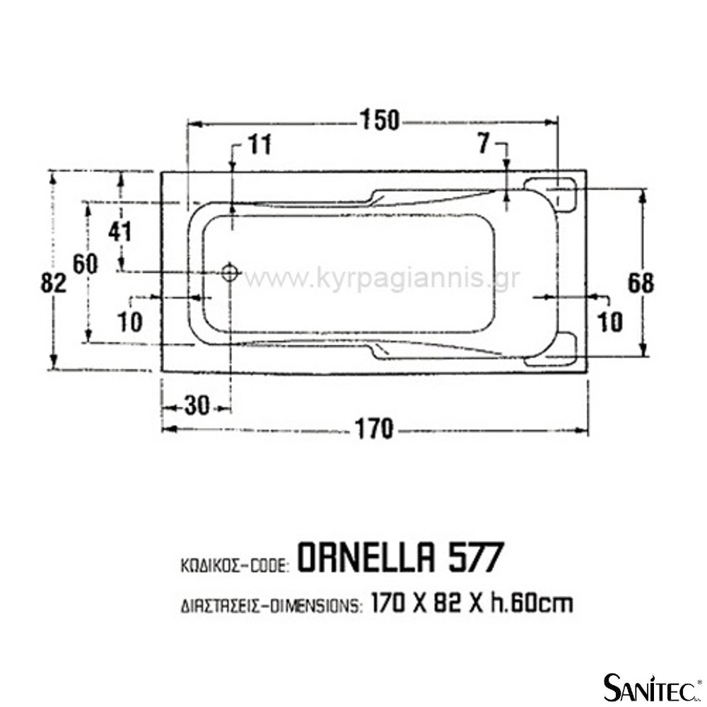 Ευθύγραμμη ακρυλική μπανιέρα “ORNELLA 170”
