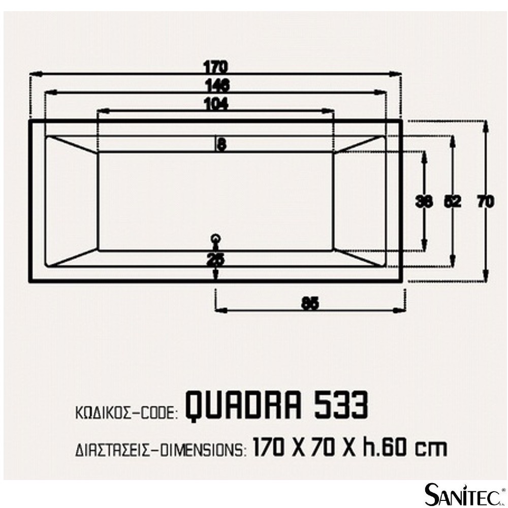 Ευθύγραμμη ακρυλική μπανιέρα “QUADRA 170”