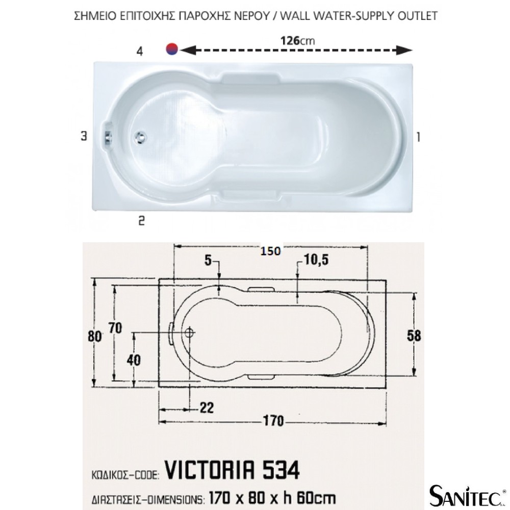 Ευθύγραμμη ακρυλική μπανιέρα “VICTORIA 170”