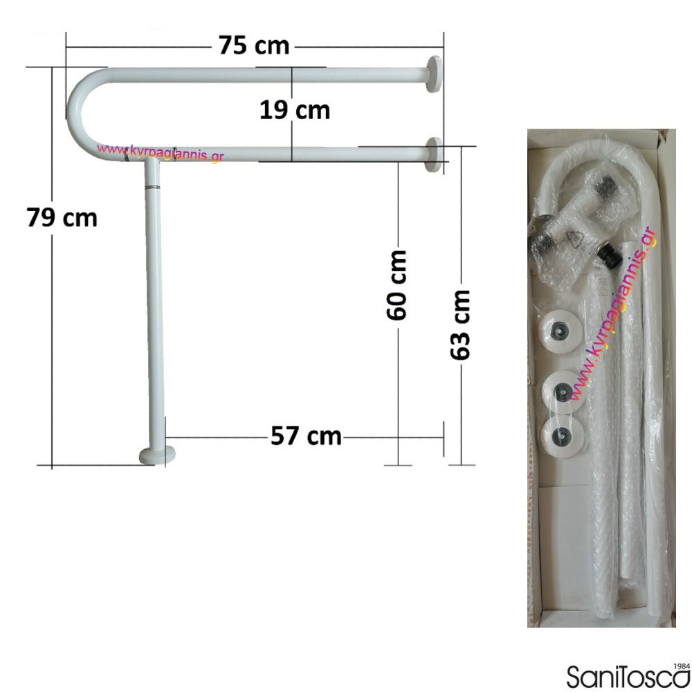 ΜΠΑΡΑ ΠΑΤΩΜΑΤΟΣ & ΚΑΘΕΤΗ λευκή 80×75 ΑΜΕΑ Sanitosco
