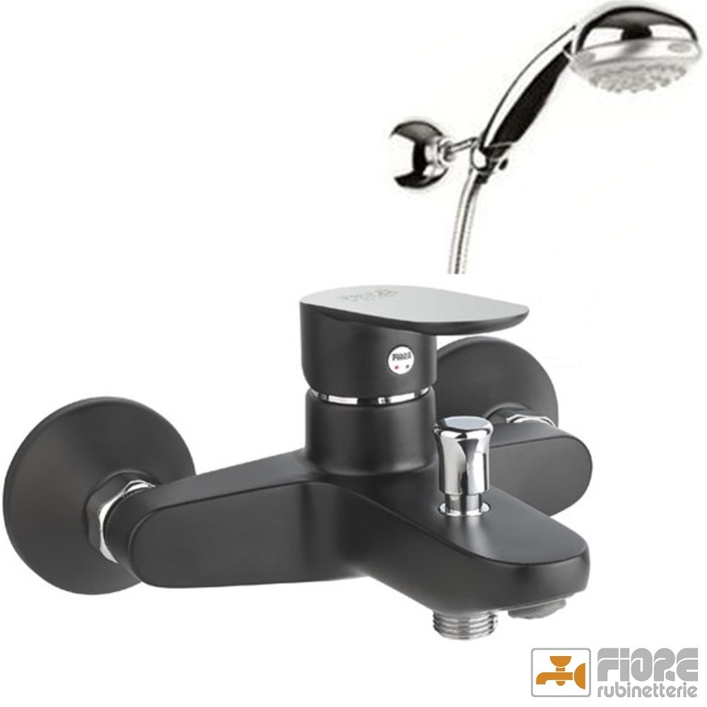 Μπαταρία Λουτρού Kevon Μαύρη της Fiore Ιταλίας, με τηλέφωνο, σπιράλ και στήριγμα ντους (81ΒX8150) ορείχαλκος