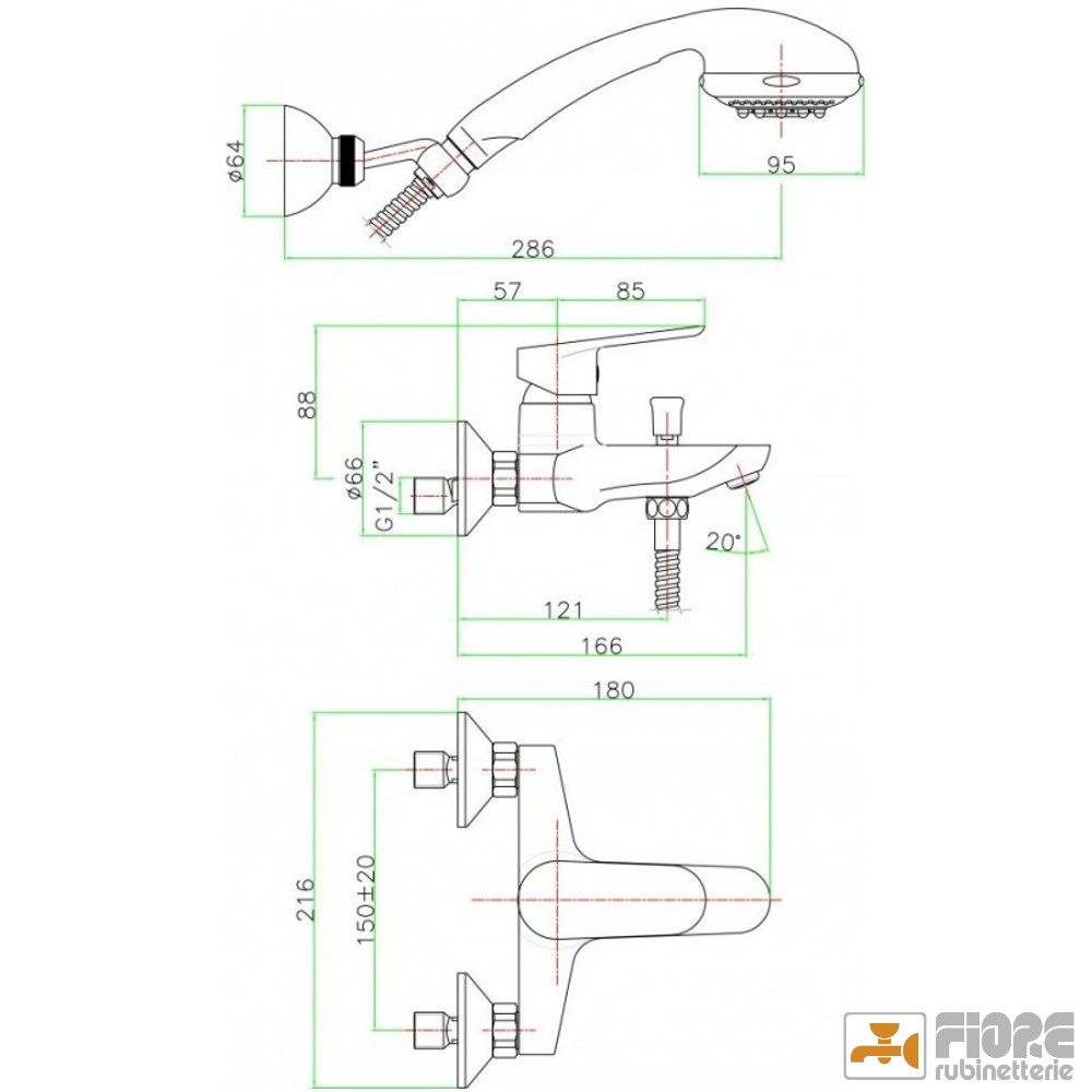• Διαστάσεις Εγκατάστασης : Απόσταση κέντρων παροχής (Hot-Cold) στα 150mm με ανοχή +/-20mm μέσω των έκκεντρων συνδέσμων.