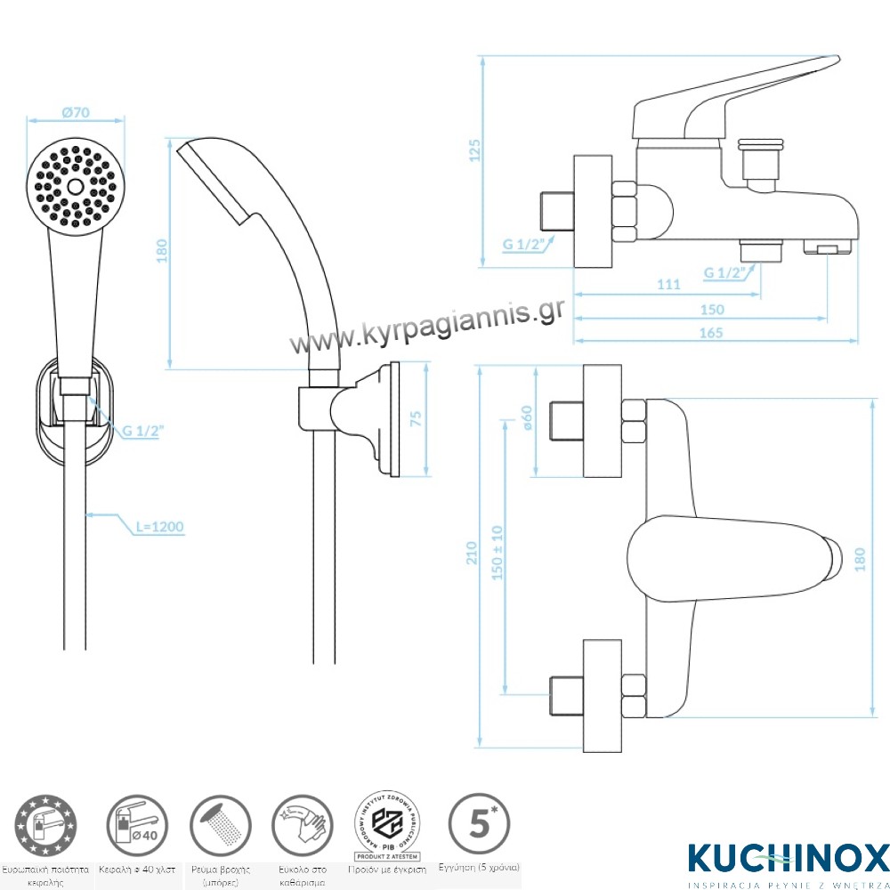 Πολωνικής προέλευσης της KUCHINOX (με 5 έτη εγγύηση στο σώμα και το κεφάλι, 2 χρόνια για τα άλλα στοιχεία)