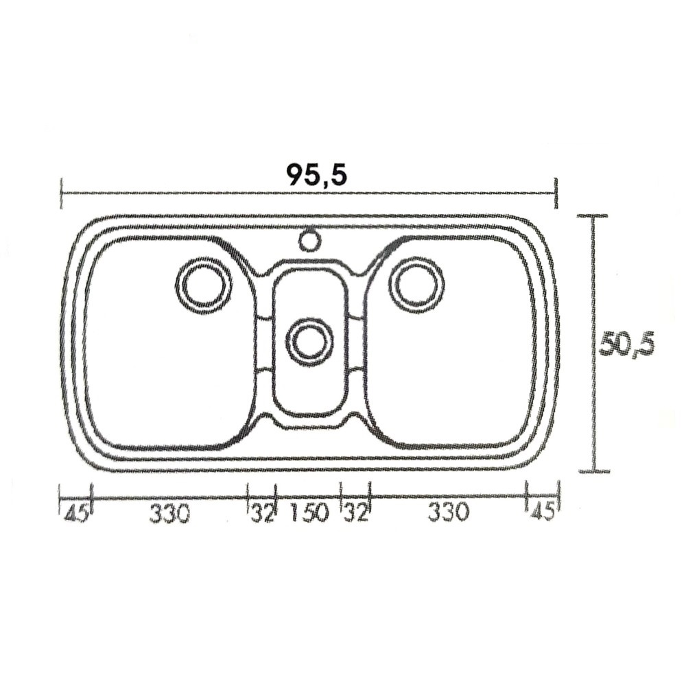 Διάσταση νεροχύτη εξωτερικά : 95,5cm x 50,5 cm