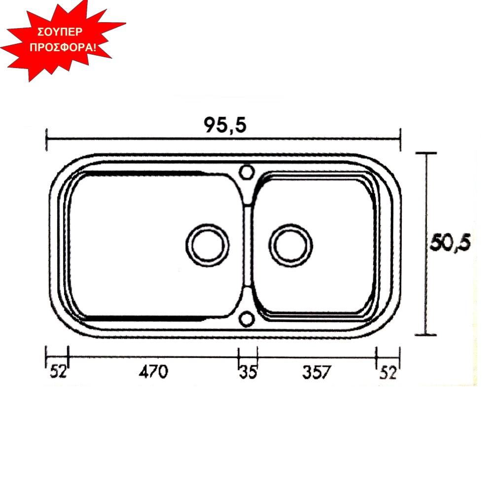 Διάσταση νεροχύτη εξωτερικά : 95,5cm x 50,5 cm