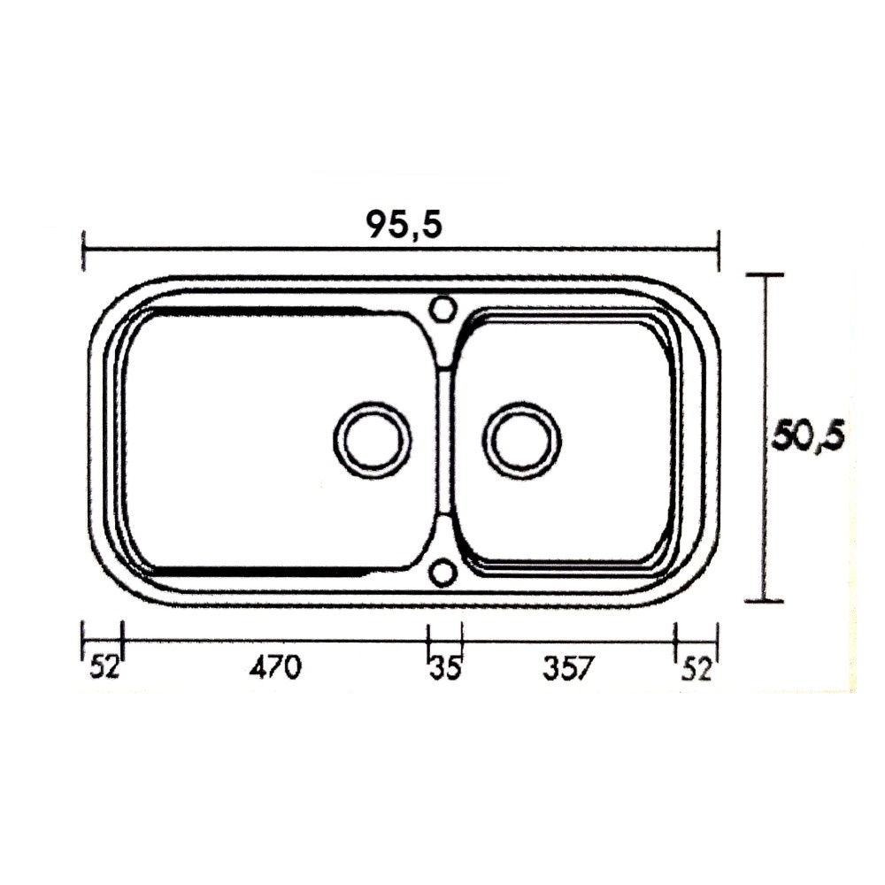Διάσταση νεροχύτη εξωτερικά : 95,5cm x 50,5 cm