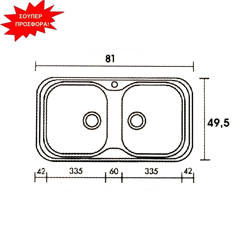 Διάσταση νεροχύτη εξωτερικά : 81 cm x 49,5 cm