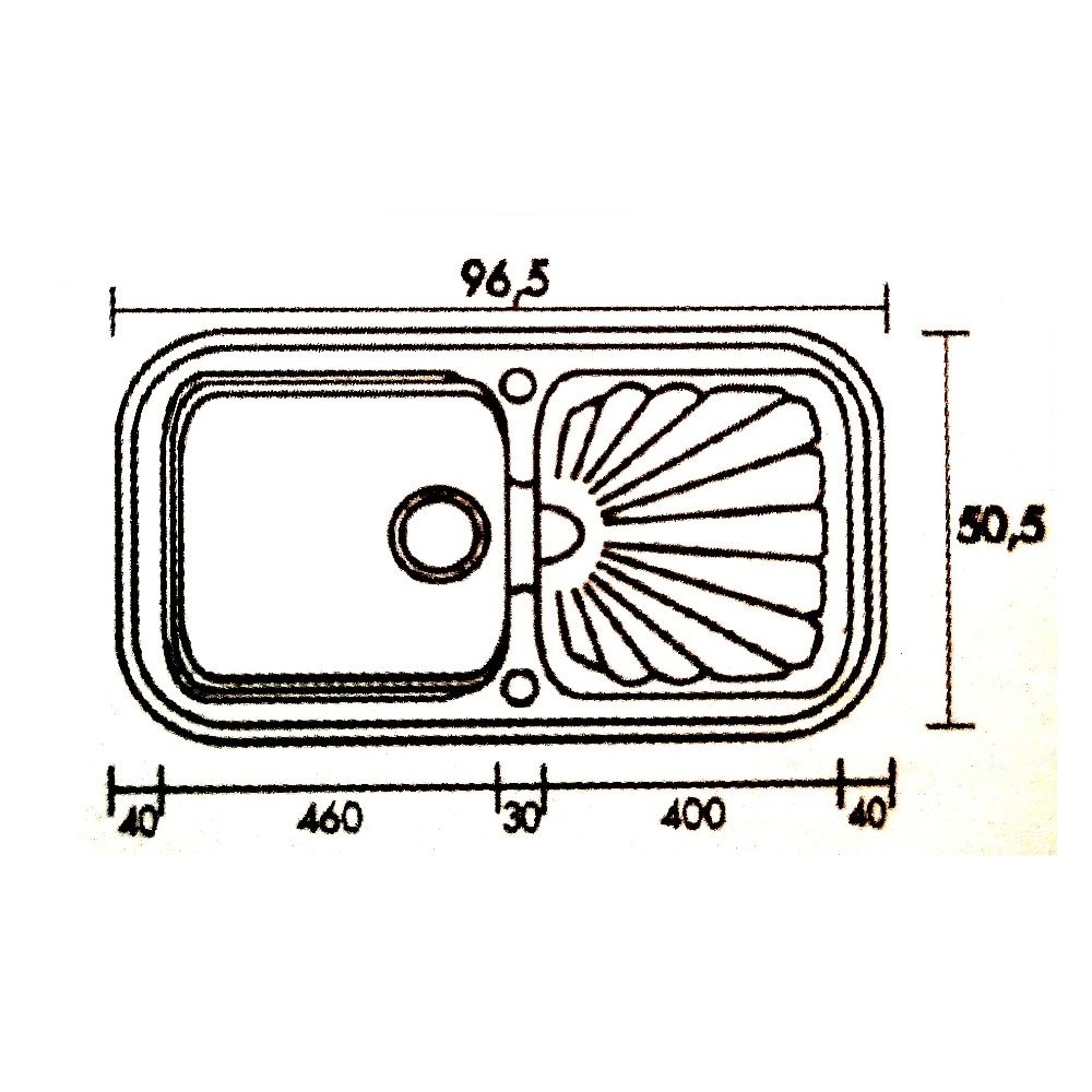 Διάσταση νεροχύτη εξωτερικά : 96cm x 50,5 cm