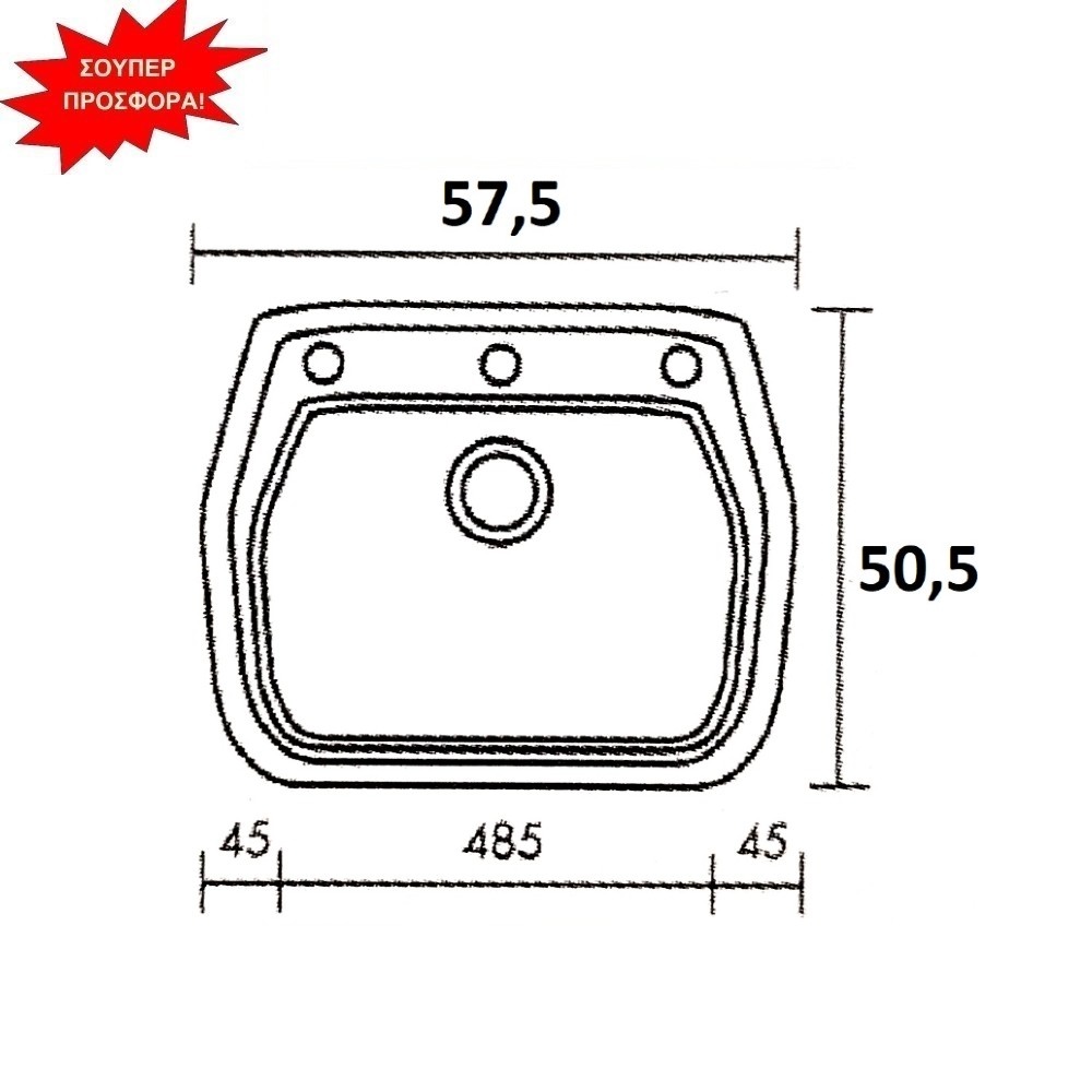 Διάσταση νεροχύτη εξωτερικά : 57,5cm x 50,5 cm