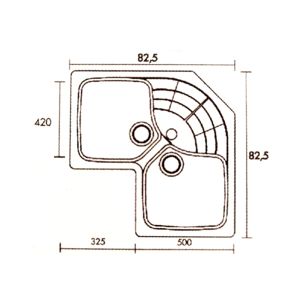 Διάσταση νεροχύτη εξωτερικά : 82,5cm x 82,5 cm x 50cm