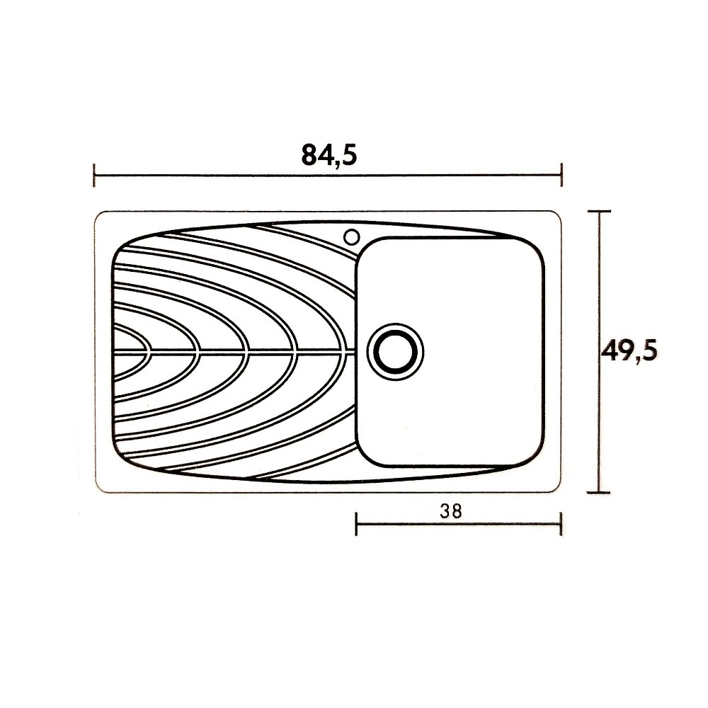 Διάσταση νεροχύτη εξωτερικά : 84,5cm x 49,5 cm