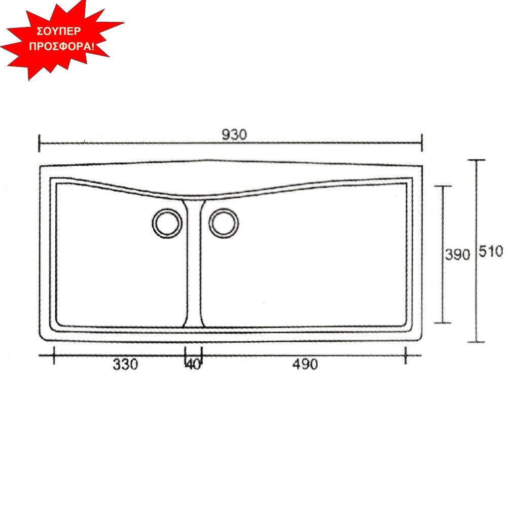 Διάσταση νεροχύτη εξωτερικά : 93cm x 51 cm