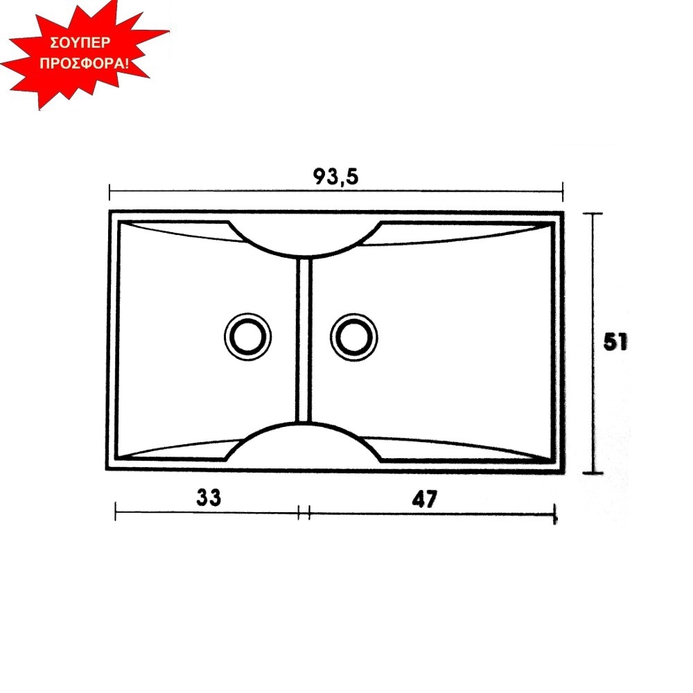 Διάσταση νεροχύτη εξωτερικά : 93,5cm x 51 cm