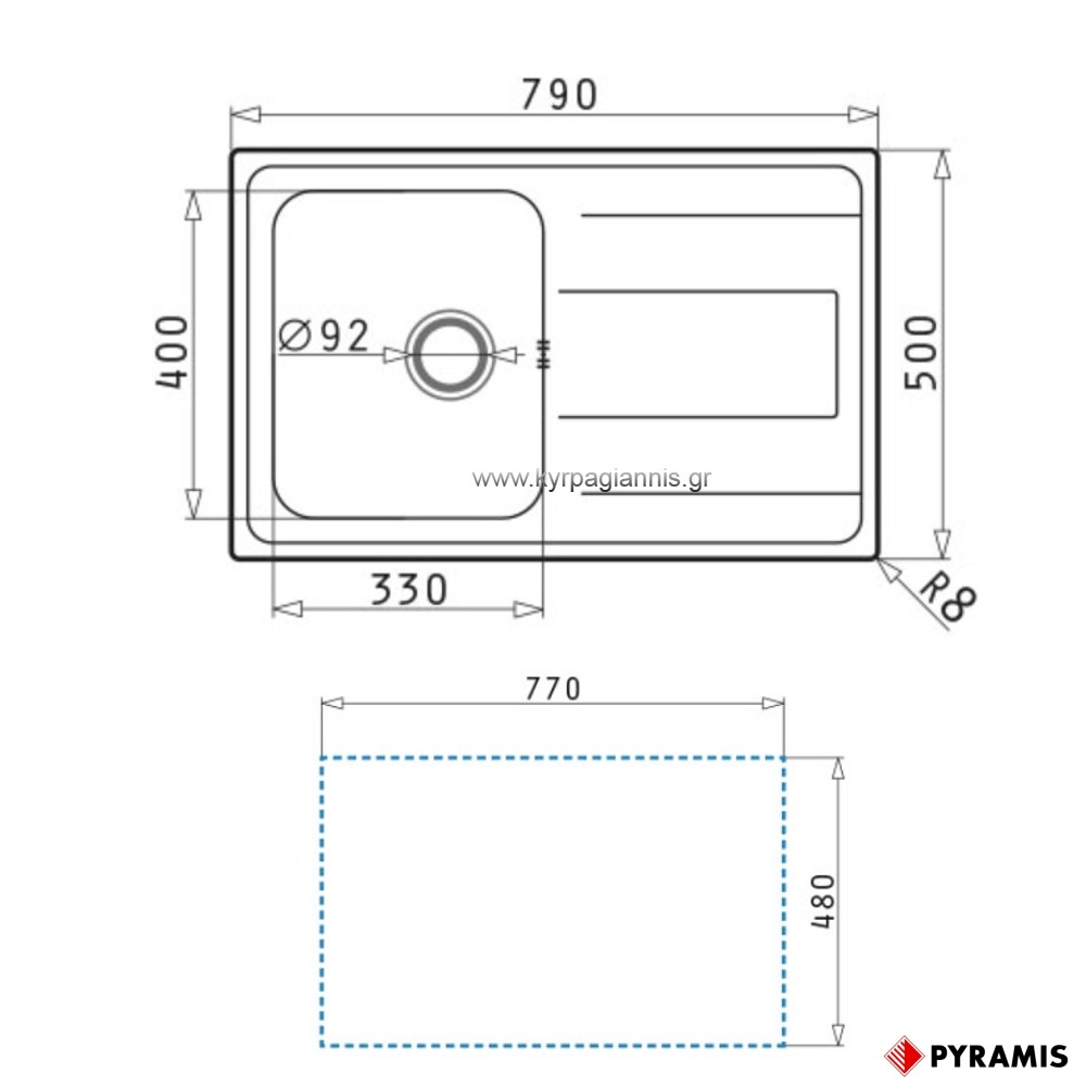 Διαστάσεις νεροχύτη : 79 x 50 cm