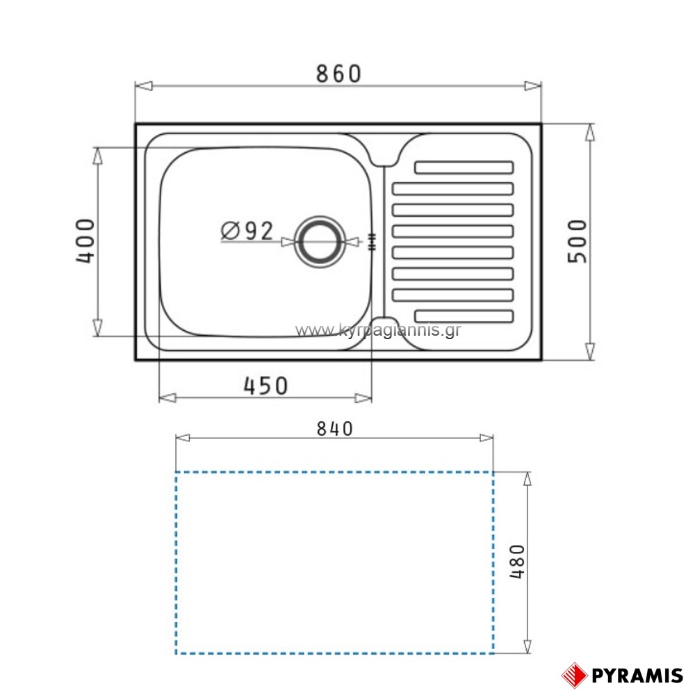 Διαστάσεις νεροχύτη : 86 x 50 cm