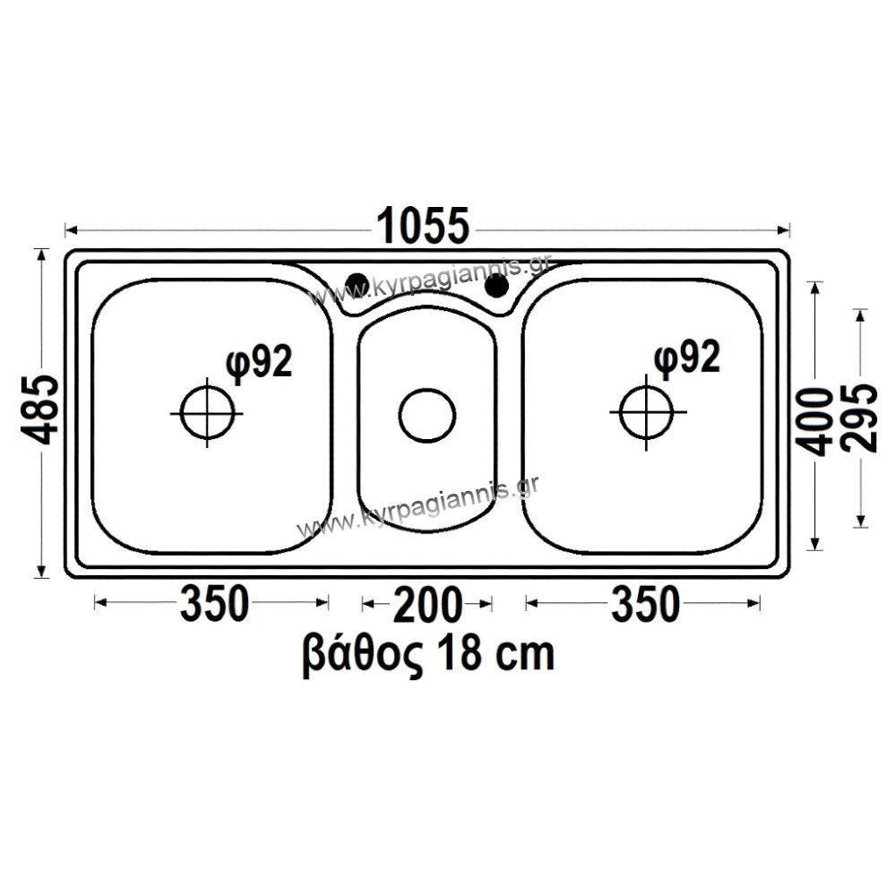 Διάσταση νεροχύτη εξωτερικά : 105,5 x 48,5
