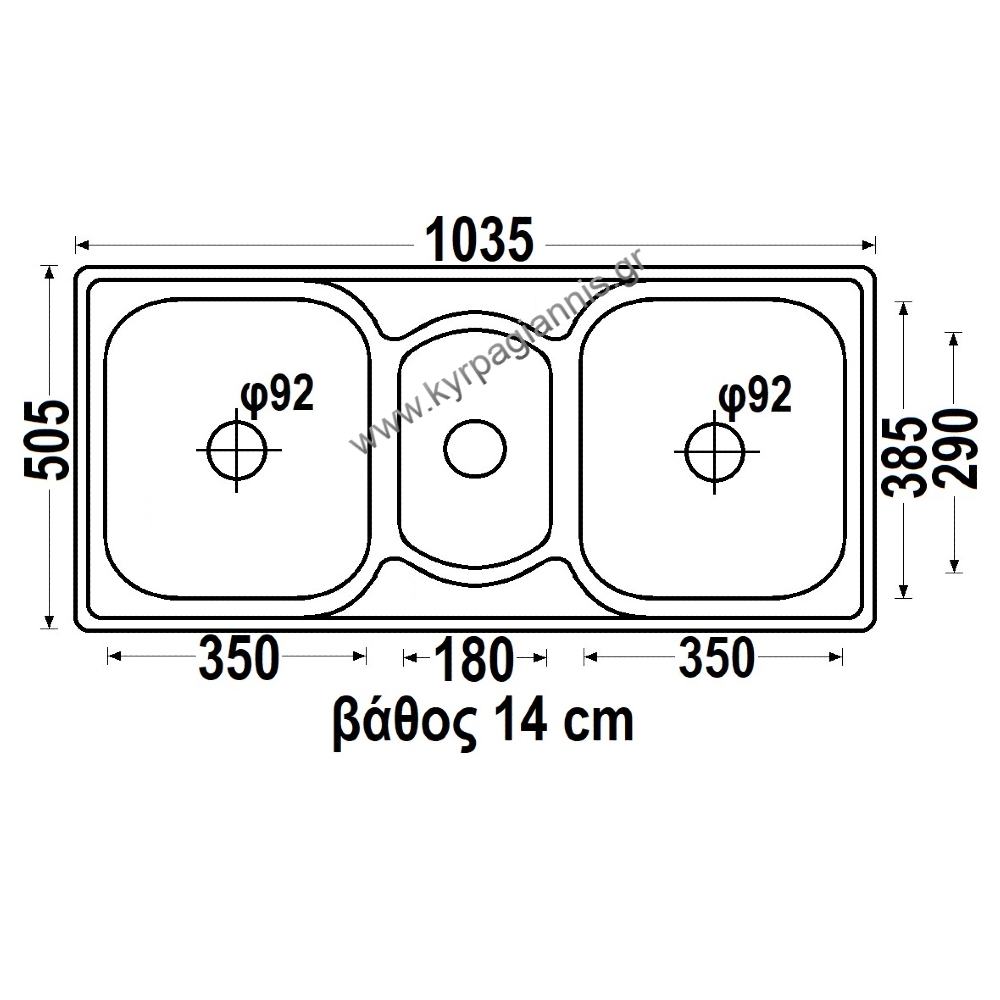 Διάσταση νεροχύτη εξωτερικά : 103,5 x 50,5
