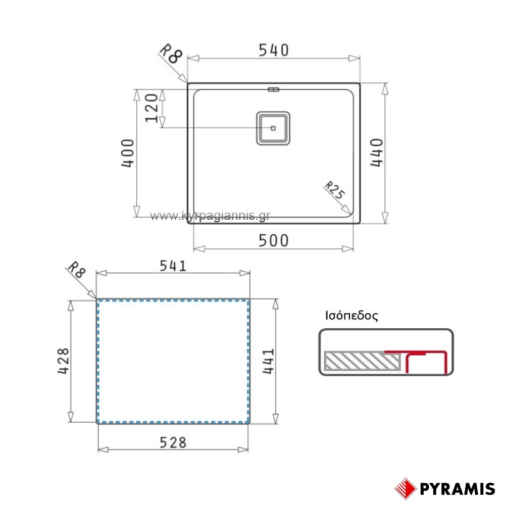 Διαστάσεις εξωτερικές νεροχύτη : 54 x 44 cm
