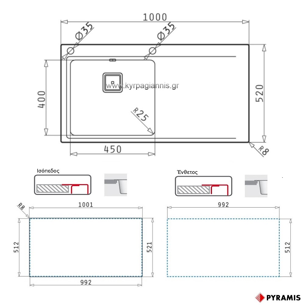Διαστάσεις εξωτερικές νεροχύτη : 100 x 52 cm