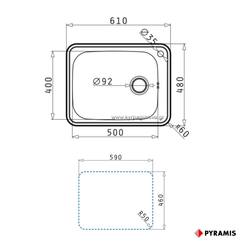 Διαστάσεις νεροχύτη : 61 x 48 cm