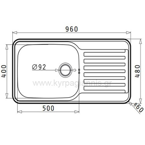 Διαστάσεις νεροχύτη : 96 x 48 cm