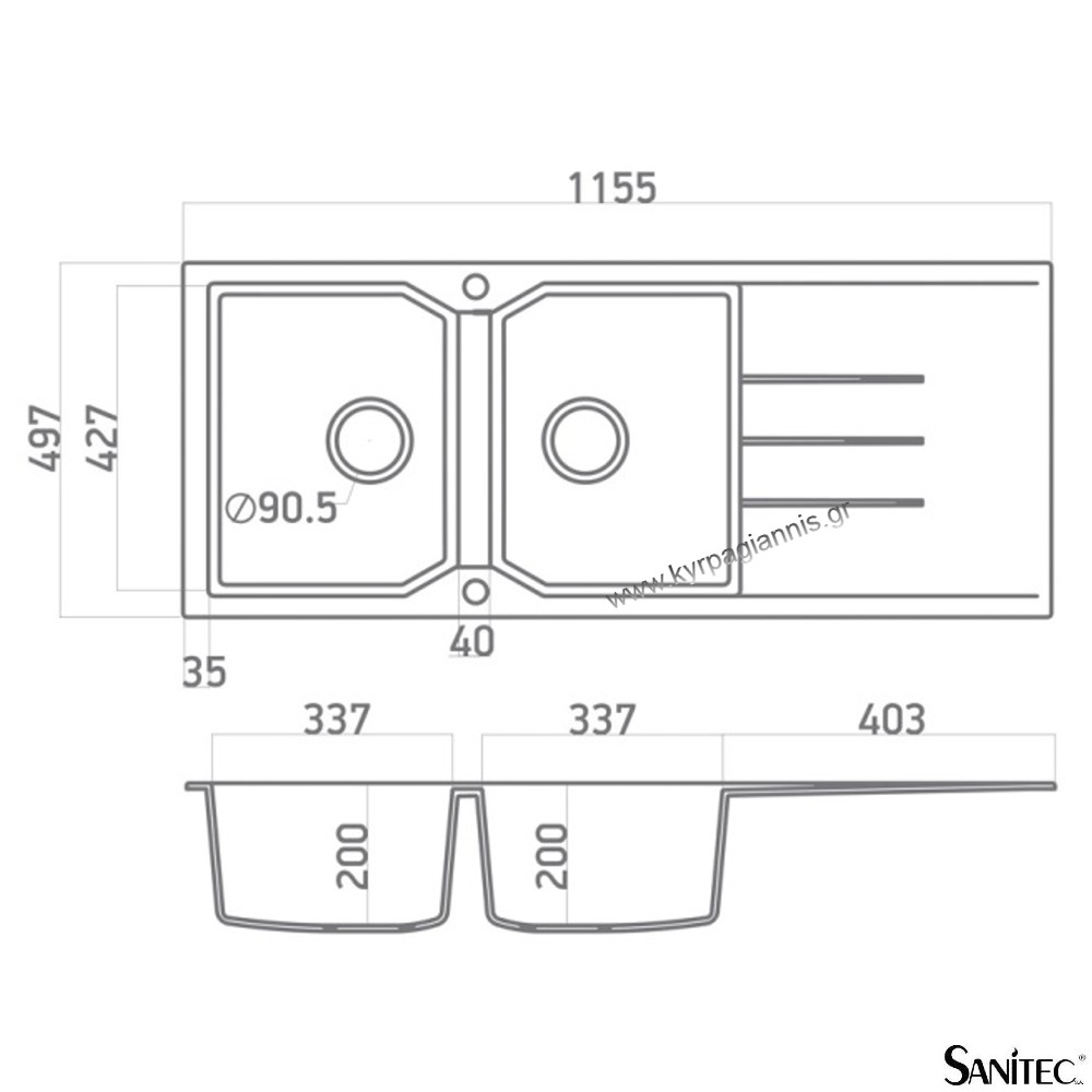 διάσταση νεροχύτη : 116×50 cm