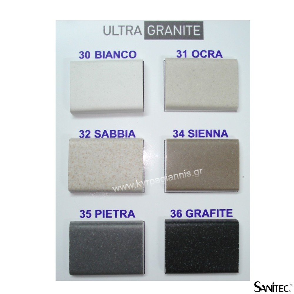 Διατίθεται στα εξής χρώματα: Γρανίτη Λευκό, Γρανίτη Ώχρα, Γρανίτη Άμμος, Γρανίτη GRAFITE, Γρανίτη SIENNA, Γρανίτη PIETRA