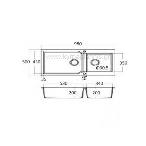 διάσταση νεροχύτη : 98×50 cm