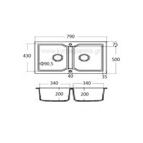 διάσταση νεροχύτη : 79×50 cm