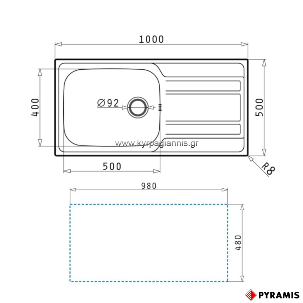 Διαστάσεις νεροχύτη : 100 x 50 cm