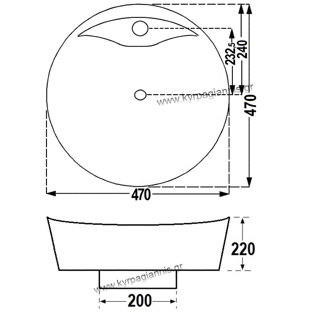 Διάσταση νιπτήρα : Φ47 cm