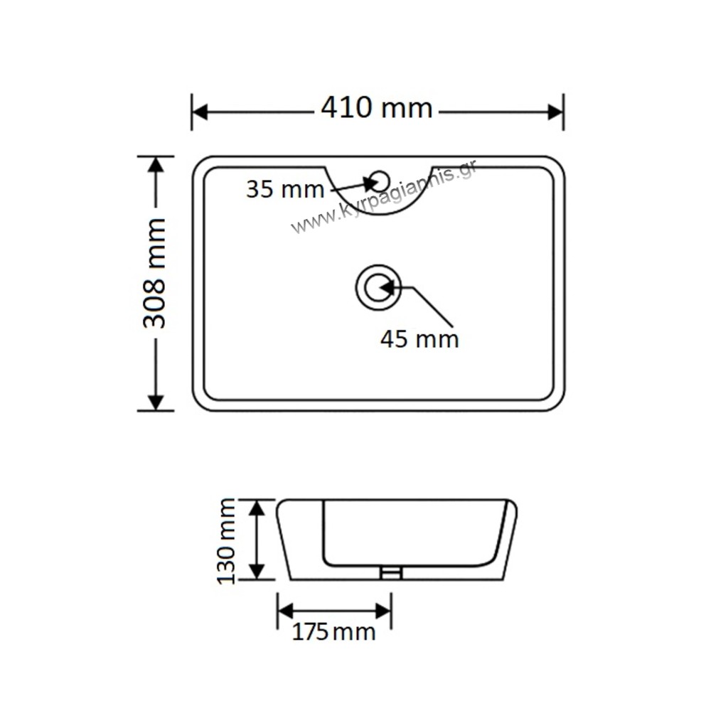Διάσταση νιπτήρα : 41cm x 31cm x 13cm