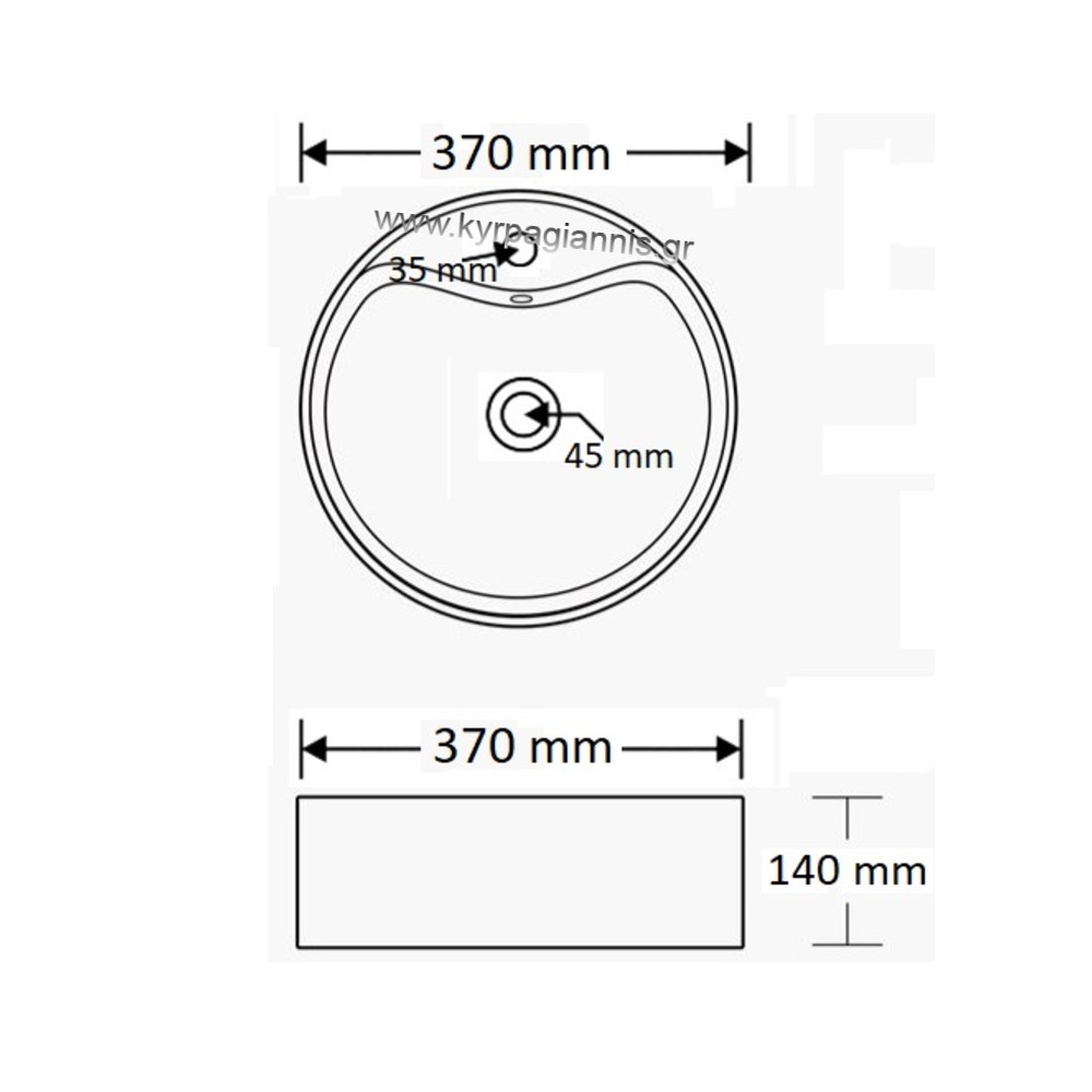 Διάσταση νιπτήρα : 37cm x 37cm x 14cm
