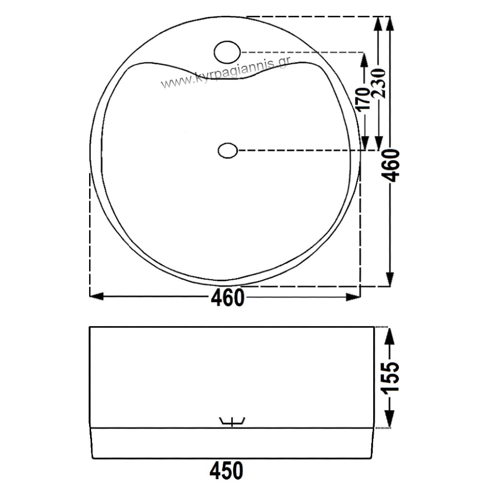 Διάσταση νιπτήρα : 46cm x 46cm x 15,5cm