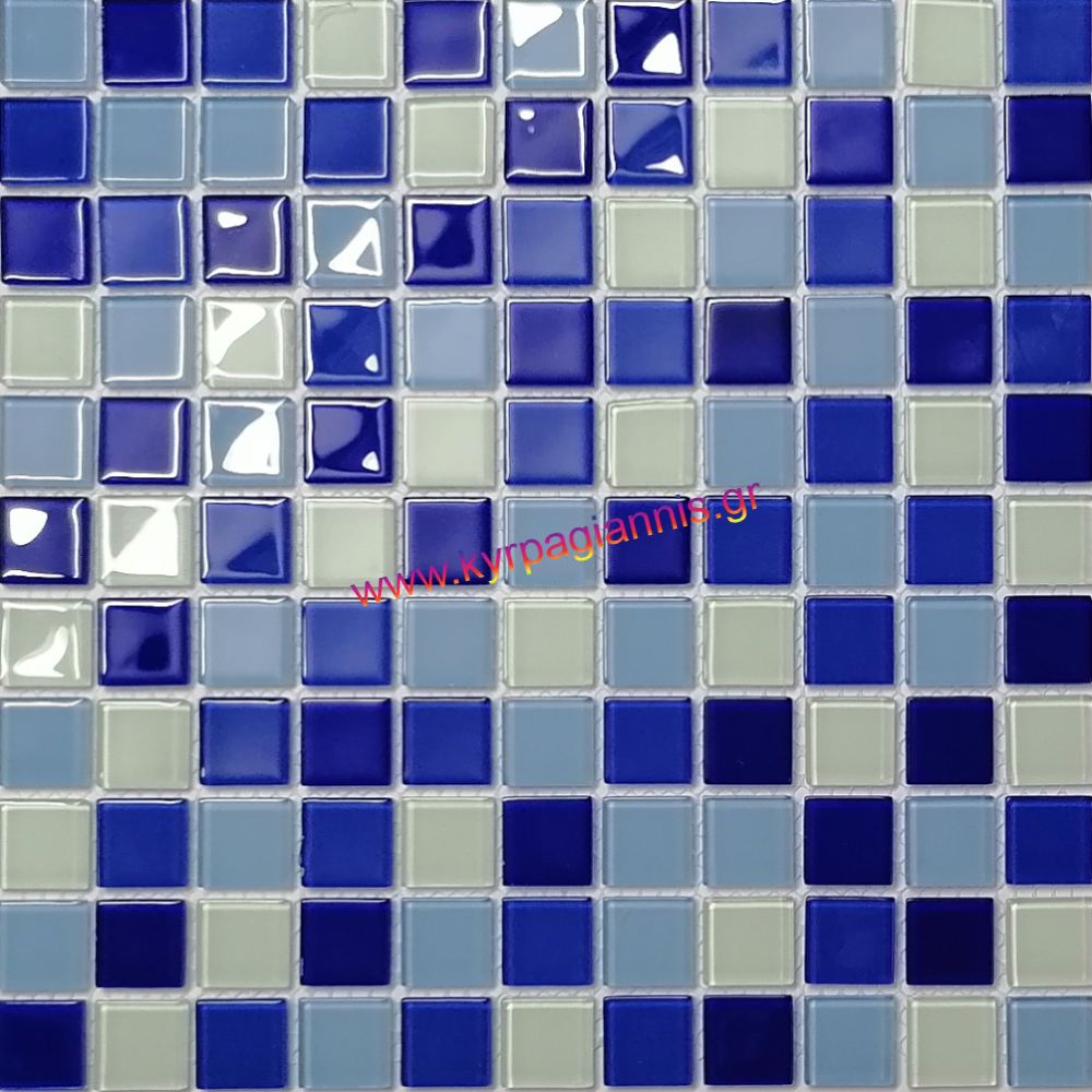 Ψηφίδα Άσπρη-Μπλε JB10 δίχτυ 30×30 γυάλινη 2,5×2,5 για τοποθέτηση σε τοίχους μπάνιου, κουζίνας και δύσκολες επιφάνειες
