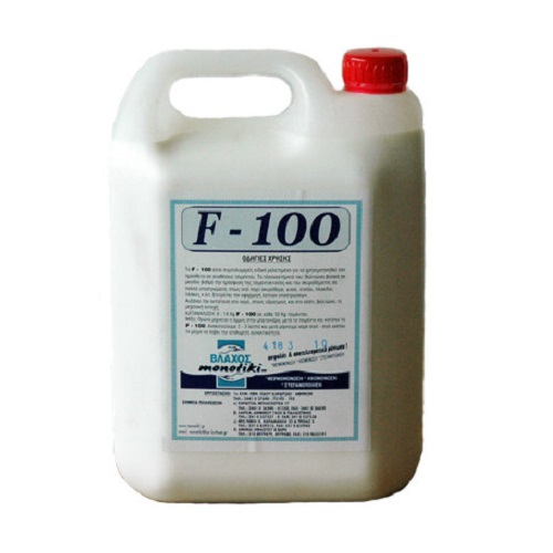 Το F-100 είναι συμπολυμερές ειδικά μελετημένο για να χρησιμοποιηθεί σαν πρόσθετο σε συνθέσεις τσιμέντου. Τα πλεονεκτήματά του : Βελτιώνει βασικά σε μεγάλο βαθμό την πρόσφυση της τσιμεντοκονίας και του σκυροδέματος σε πολλά υποστρώματα, όπως από παχύ σκυρόδεμα, γυαλί, ατσάλι, πλακίδια, πλάκες κ.λ.π. Επιτρέπει την εφαρμογή λεπτών υποστρώσεων. Αυξάνει την αντίσταση στο νερό, στους υδρατμούς και στο αλάτι, βελτιώνει τη μηχανική αντοχή.