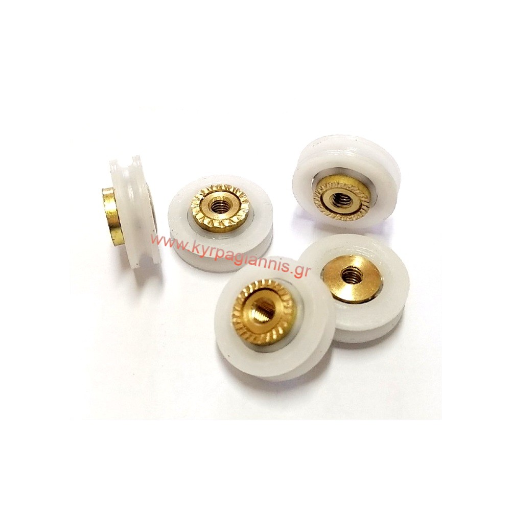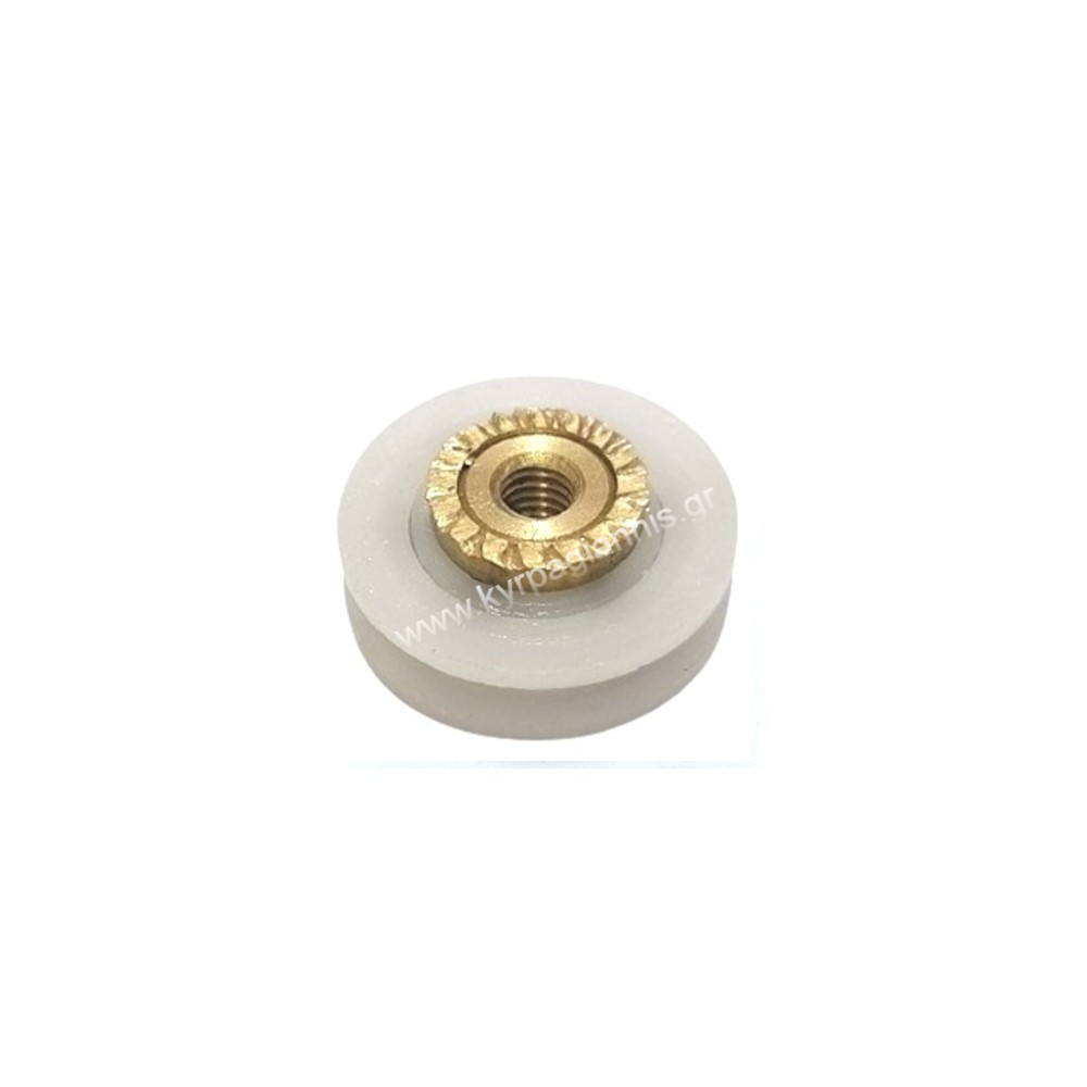 • υλικό : ανθεκτικό τεφλόν και ορείχαλκος Ιδανικό για ανταλλακτικό καμπίνας και διαθέτοντας διχάλα τοποθετείται εντός της ράγας της καμπίνας για ομαλή κύληση της πόρτας.