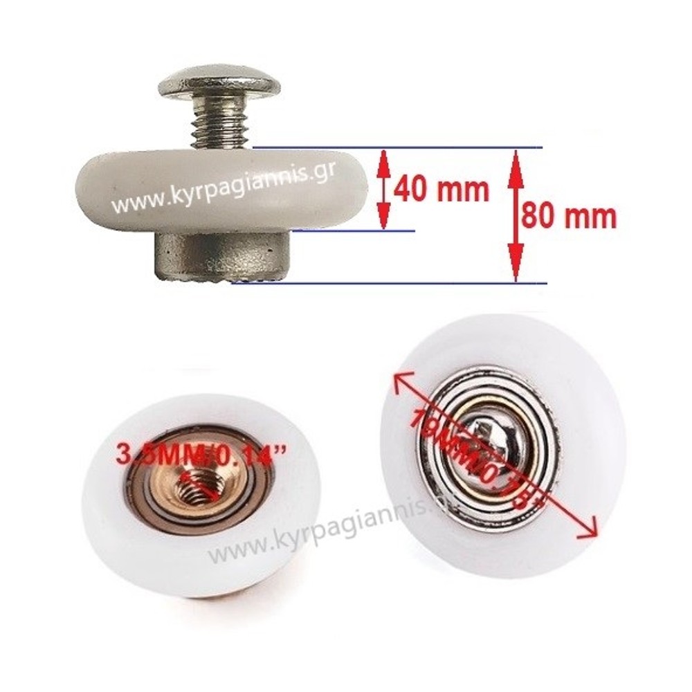 Ροδάκι καμπίνας μπάνιου “HS017” με βίδα • τοποθέτηση : πάνω και κάτω μέρος της πόρτας της ντουζιέρας