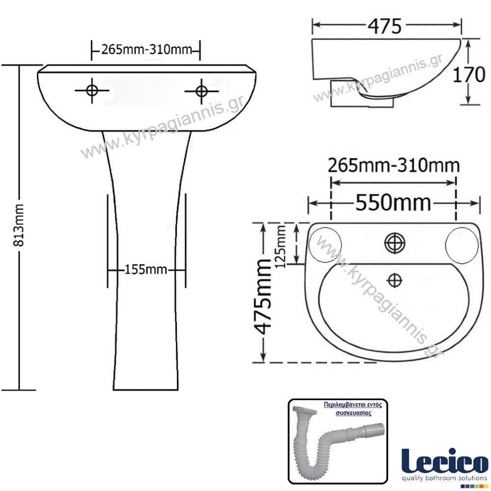 Διάσταση νιπτήρα : 55cm x 47,5cm x 81,3cm